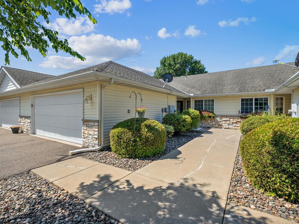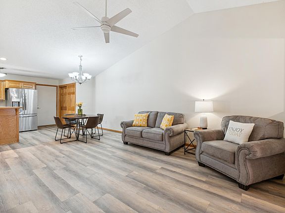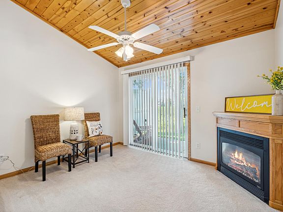 Welcome home! Wonderful one level living townhome with a great location...close to shopping and restaurants in a 55+ community. Enjoy the Open Concept with in-floor heat and most appliances being new stainless. Large living area leads to the Sunroom with gas fireplace and walkout to the patio overlooking a wetland area. No close neighbors behind and watch the stunning sunsets from your patio! Fresh paint throughout along with new vinyl flooring. Ample guest parking in close proximity. Move in and Enjoy!