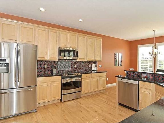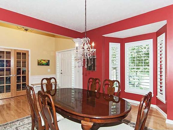 New plantation shutters thru out on ground level. Formal dining with hardwoods, Den w/ French doors, 2 story great room w/soaring ceiling and palladium windows, Gourmet kitchen w/ stainless steal appliances, granite counter tops, addtl eating at counter pantry. Breakfast room w/ view to common area. Master suite with vaulted ceiling, walk-in closet, Mstr bath, whirlpool tub and sep shower, dbl vanity, ceramic tile. Partl bsmt w/9 ft clng, . 3 car garage. Prof landscaped. Loaded w/upgrades