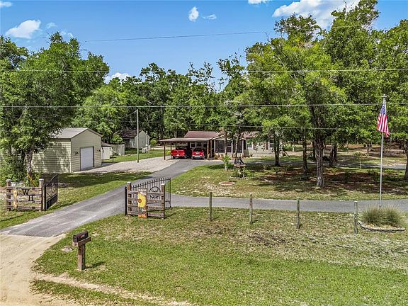 Welcome to your private retreat in Trenton, FL! This charming 3-bedroom, 2-bathroom home sits on 5 beautiful acres and offers the perfect blend of comfort, functionality, and outdoor living. A gated entrance and paved circular driveway provide both security and convenience as you arrive at the property. Enjoy peaceful mornings and relaxing evenings in the spacious screened-in rooms at both the front and back of the home. Inside, the home features a split floor plan with a spacious living area, perfect for gathering with family and friends. The kitchen offers ample counter space and cabinetry, making meal prep a breeze, while the adjacent dining area overlooks the serene outdoor views. The primary suite includes a private bath, and the additional bedrooms are generously sized, ideal for guests or a home office. The home also features a brand-new A/C unit, ensuring comfort year-round. The property is well-equipped with two large workshops and an additional shed, perfect for storage, hobbies, or projects. A dedicated generator with its own gas supply ensures you’re always prepared, and the 30-amp RV hookup makes it easy to accommodate guests or your own travel trailer. Nature lovers will appreciate the variety of fruit and olive trees scattered throughout the land, adding to the serene, homestead-like feel of the property. This is a rare opportunity to own a well-maintained slice of Florida countryside with space to grow and room to roam.