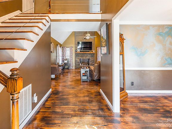 Experience the pinnacle of comfort in this 3 bedroom, 3 bath brick home, gracefully situated on over half an acre. The journey begins as the covered front porch beckons you. Inside, stunning wood floors extend throughout the main living areas while a snug gas log fireplace, and soaring vaulted ceilings can be found in the living room. The kitchen is a dream, boasting granite countertops, refinished cabinets, and stainless steel appliances. A generously sized primary bedroom with an ensuite bathroom, including a spacious walk-in closet is located on the main floor. Ascend to the upper floor where the 2nd bedroom offers two closets, ensuring ample storage space. Venture outside to the back covered screened porch & attached deck, where relaxation takes center stage, overlooking a koi pond & a stunning fenced in-ground pool. Enhancing the outdoor experience is a built-in grill and sink, perfect for entertaining. Offered as-is, seize the opportunity to make this home your own.