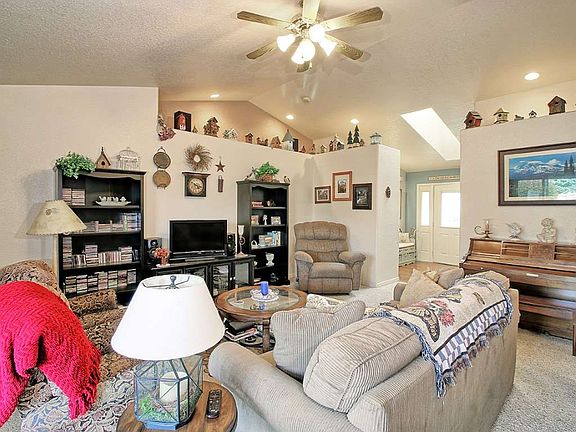 Great ranch style home in wonderful location with 2,110 sq ft, 3 bedrooms (2 master suites), 2 baths and an oversized 2 car garage. Beautiful newer shower in master and split bedroom floor plan. Plant shelves with outlets & wired for surround sound. Some of the extra features include Central vacuum, 3 zone heating, 2 Breezair coolers, breakfast nook and formal dining room plus a nice office space or nursery off of master bedroom. Fantastic spacious yard with 8 zone sprinkler system for yard and garden area. RV parking and no covenants. Expanded patio and shed with electricity. Garage features a pull down ladder to access for additional storage area above garage and mud sink. You won't want to miss this one!!