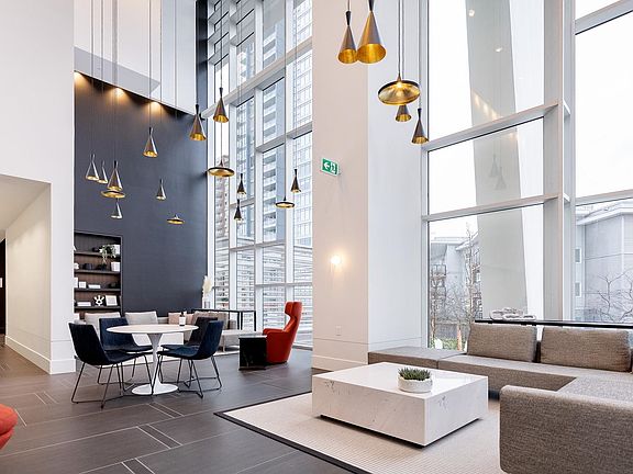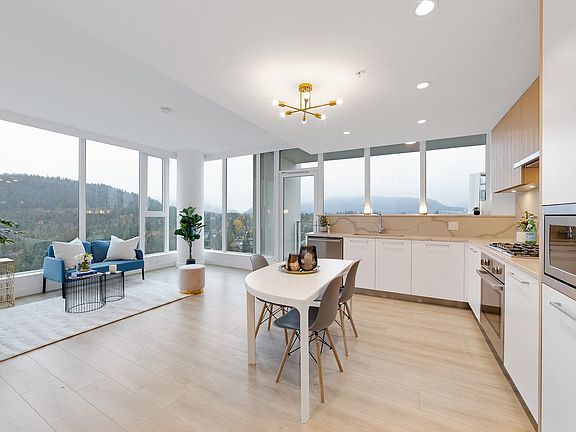 567 Clarke + Como by MARCON- Coquitlam's tallest tower. Be the first to live in this spacious NW+ NE facing CORNER 2bdrm+2bath+2 balconies with Air Conditioning! Fantastic open layout with 9' ceilings and floor-to-ceiling windows, lets you enjoy sweeping mountain + unobstructed views. This homes features a well-equipped kitchen with Bosch 30" Gas cook-top+wall oven, Fisher & Paykel Fridge and lots of cabinets for storage. Amenities: concierge, gym, sports court, karaoke, music piano, table tennis, yoga/barre + kids' rooms, 2 guest suites plus a swanky Sky Lounge on the 49th floor. Location: Burquitlam skytrain station, groceries, shopping, fitness, restaurants. 1 EV Parking + 1 Locker. GST PAID.