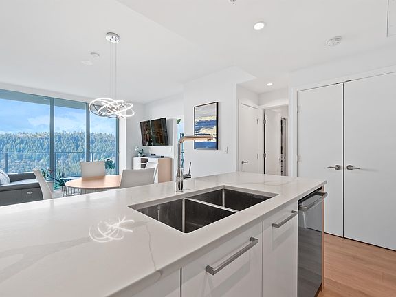 Welcome to Coquitlam's tallest tower-Clarke+Como. This 2 bed, 2 bath + office home has the best floorplan in the building: Sky high beautiful forested and city view - super private. Bedrooms on opposite sides (BOTH w/ensuites!) + access to the balcony from the living room and primary bedroom. Bonus: a huge balcony means over 1100sf of living space! Over 40K worth of custom cabinetry in office, living room, bdrm and closets; BOSCH/Fisher Paykel appliances,gas range,over-height nearly 9" ceilings,A/C. Over 20,000 sqft. of amenities: Sky Lounge (49th lvl!), Guest Suites,Sauna,Sports Court,Karaoke and more. Quality built by MARCON with 2-5-10 warranty. Steps to Burquitlam station. 1 big parking w/EV charging + 1 storage inc. Call to view!