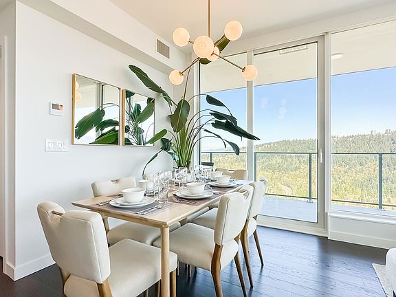 Soaring high above the city, this stunning 1,341 sqft sub-penthouse corner unit is a true "home in the sky" with 3BR+den, and 2 bathrooms. Step out onto your massive 421 sqft wraparound balcony and take in the million-dollar, unobstructed views of the mountains, city skyline, and water—an ever-changing panorama by day and night. Thoughtfully designed with floor-to-ceiling windows and an open-concept layout, the home is flooded with natural light and showcases premium finishes throughout. Enjoy access to 2 full levels of luxury amenities, from fitness facilities to serene lounges. Located just steps from Burquitlam Station, you’re minutes from downtown Vancouver, SFU, shopping, dining, and parks. This is elevated urban living at its finest—luxury, location, and lifestyle in perfect harmony.