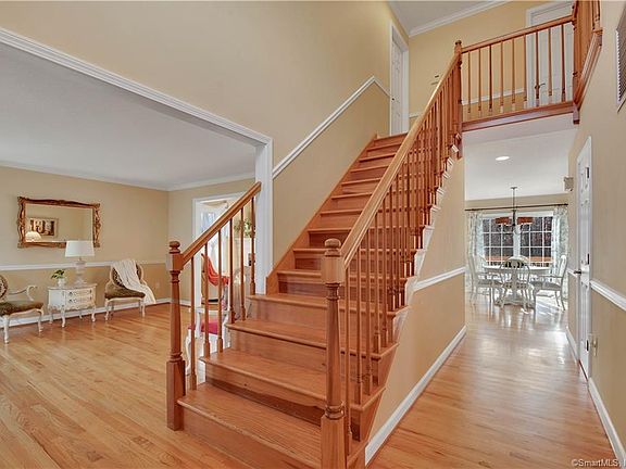 CENTER HALL COLONIAL on .83 acre lot Two-story entry is flanked by formal dining room & living room each with BAY WINDOWS. Enjoy the open layout & THREE FLOOR-TO-CEILING WINDOWS in family room that capture the beauty of LARGE, PRIVATE BACK YARD & undevelopable land. Eat-in KITCHEN features STAINLESS APPLIANCES, GRANITE COUNTERS, cabinets with ROLL-OUT drawers, ISLAND SEATING & SLIDERS to DECK CORNER WINDOWS over sink offer view of hummingbirds from the July-October blooming mimosa tree. BUTLER'S PANTRY has WALL OF CABINETS, GRANITE counter with BEVERAGE REFRIGERATOR & creates the perfect flow to dining room. Access to two-car garage off from kitchen is ideal with DROP ZONE hidden behind closet doors. FOUR bedrooms upstairs all with HARDWOOD floors. MASTER BEDROOM SUITE is a spacious, peaceful retreat with WALK-IN CLOSET & a MASTER BATH with shower, double sinks and Jacuzzi tub. The other three bedrooms are spacious with double closets The lower level of the home has two double-hung windows at the back of house & the hatchway has only four steps up to access your big beautiful back yard Imagine your own home theater, game room & gym. Pride of ownership shines with chair rails, crown molding, hardwood floors, RECESSED LIGHTING & Kloter Farm Shed, GAS FIREPLACE, CENTRAL AIR, etc. Driveway parking for 8 with turnaround VINYL SIDING for maintenance free exterior. Walkable neighborhood with public gardens. Close to shopping, malls, grocery, gym and I84. (agent related