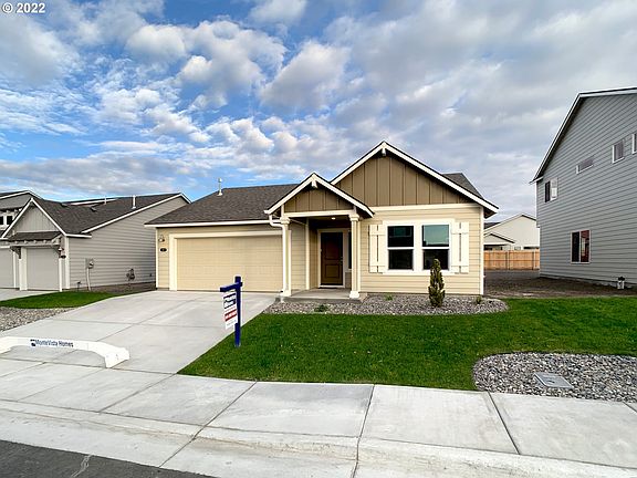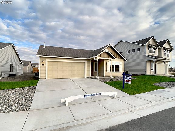 LOT:LE32 - New move-in ready 1900 SQFT traditional single level home. 3 bed 2 bath with luxurious primary suite with soaking tub, shower and walk-in closet. Deluxe chef's kitchen with quartz counters, pantry and 5 burner stainless built-in gas range. The Charity in the desirable Legacy neighborhood in Hermiston OR. Built by award winning builder MonteVista Homes. Great room, forced air heating, A/C, gas fireplace and covered patio. **Save up to $500 a month with builder financing special**