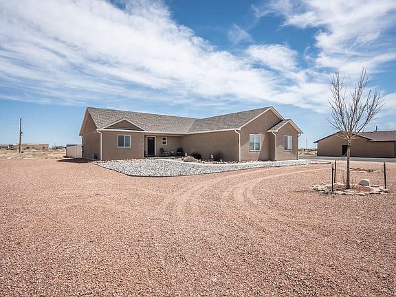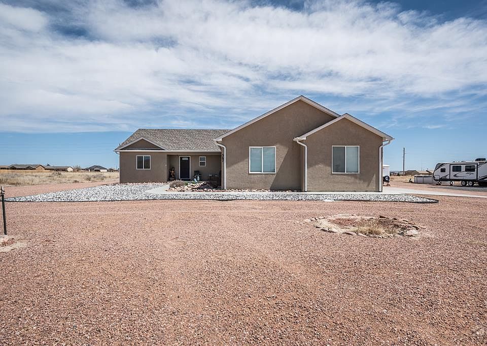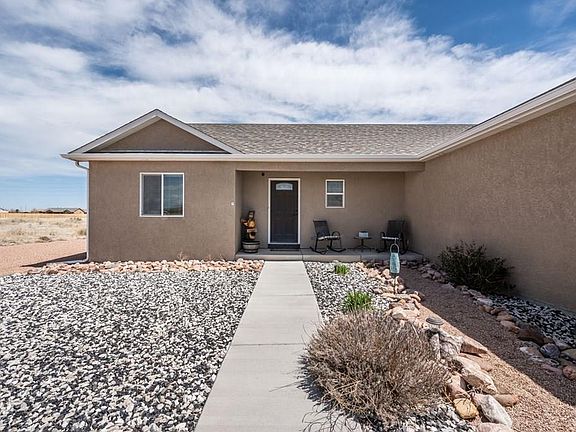 Take a look at this beautifully designed ranch-style home on the Northside of Pueblo West. Open floor plan featuring 3 bedrooms, 3 bathrooms, and 3 car garage! Kitchen has luxury vinyl tile floors, soft close cabinets in a carbon color, stainless steel appliances with gas stove. Large pantry for plenty of storage, granite counters, and pendant lights. Master bedroom is spacious with a view of Pikes Peak and features master bath with walk-in shower with custom tile and his/her sinks in the granite countertops. The other two bedrooms share a full bathroom. Notice the attention to detail in this home with the large fans, custom lighting, window seals that are wood trim, custom closets, tankless hot water heater, and 42-inch blanked crawlspace. Large covered patio lets you enjoy the view of Pikes Peak, fenced backyard with lawn and rock. Better than new!