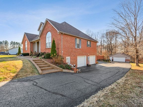 Welcome to your dream home! This charming 3-bed, 2-bath brick residence boasts a spacious layout, complete with an upstairs bonus room, and a sunroom, for those sunny days. The full 2,280 sq ft basement features a garage,storm shelter, and there's an additional detached garage with spray foam insulation.. Enjoy the outdoors with a heated in-ground pool surrounded by a brick fence. The kitchen features a convenient lazy Susan in the cabinets. The property also includes a deck overlooking a serene creek and wooded area, complete with electric for added convenience. This home is a perfect blend of comfort, style, and functionality. Schedule your tour today and make this haven yours!