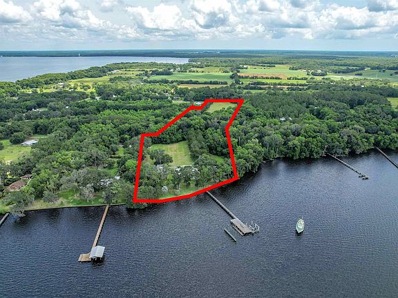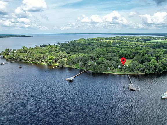 Have you ever wanted to live in a classic Florida home setting along the St. Johns River? This beautiful property will allow you to step back into time and experience classic charm. The property is filled with tall cypress and majestic oak trees draped in Spanish moss. You’ll also enjoy the many native palms making you feel as if you’ve finally made it to paradise. This property boasts 10.9 acres and 278 feet of riverfront and each room has a breathtaking view of the St. Johns River. This home has 4,336 square feet with 5 bedrooms, 3 full bathrooms, and 2 half bathrooms and was originally built in 1938. There was an addition in 1968 adding an additional living room, 2 bedrooms, and an enlarged kitchen. Inside the home, you will notice original wood floors and cedar finishes throughout. There is a separate guest house with a full bathroom, kitchenette, and a door leading you to the screened in pool, but it doesn’t end there… There is also a workshop/tractor barn for additional storage. This home has been in the same family for 84 years, and still holds old Florida touches from 1938. The bulkhead spans the entire 278 ft of riverfront, it also has a smaller lift system to launch jet skis and/or small water craft. At the end of the dock, you’ll find a large 30,000 lb boat lift with water and electricity. The dock also has a second slip with breakwater protection and pilings that could support an upper deck for boathouse or sun deck! One of the most valuable things about this property is the DEEP WATER ACCESS which is unique to this property (many of the neighboring properties do not have deep water access). Your family and friends are sure to enjoy the sunsets and everything else this incredible property has to offer as it is truly an old Florida experience. Even though this is the quintessential old Florida home, it updated electrical, plumbing, appliances, and central heat and air. Also included is a Generac generator that powers the entire home. One last fun fact, this home has weathered multiple hurricanes and has NEVER had water breach into the interior of the home.*APPOINTMENT ONLY- Private drive- DO NOT drive down without calling listing agent, sellers may still be on property*