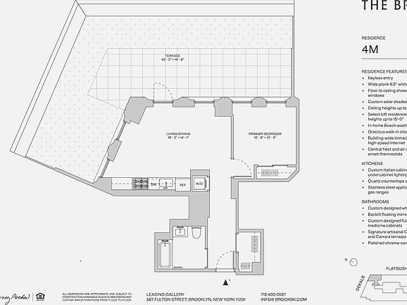 - Exterior features: , Bicycle storage, Broker Exclusive, Childrens Playroom, Cold Storage, Concierge, Fios Available, Guarantors, Leed Registered, Live In Super, Locker Cage, Media Room, Package Receiving, Public Outdoor Space, Roofdeck, Terrace
