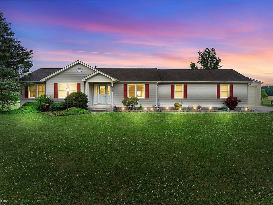 Sprawling ranch situated on almost an acre and half of land, what more could one want?! This 3 bed 2 full bath home features a spacious, semi-open concept that will accommodate any family gathering. Walk through the front door and you are immediately greeted with tons of natural light and high ceilings. From the family room, you will find the spacious kitchen, appliances included, of course. After dinner walk out onto your three season room to enjoy the views of your property for the evening. Down the hallway you will find a full bathroom which 2 of the bedrooms have access to, as well as the primary bedroom, en suite bath attached. The basement is unfinished, waiting for the next owner to finish to their liking. Outside you will find multiple sheds on the property, but nothing can beat the enormous detached garage, which includes heating, water, and a generator! Sitting on 1.43 acres this beautiful ranch is waiting for the next owners to put their personal touches and make this