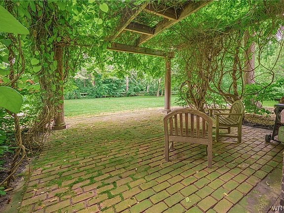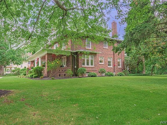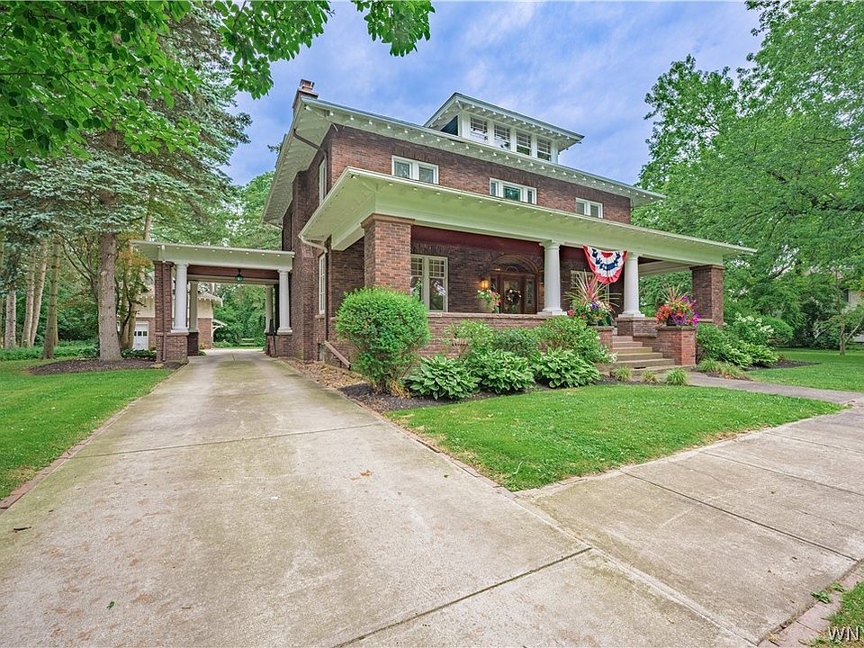 Pride of ownership & attention to detail best describe this home situated in a park like setting in the Village of Wilson. Bordered w/stately wrought iron fencing..Welcoming front porch. Center entrance colonial with leaded glass front door and side lights..Original hardwood flooring throughout. Dining room w/coffered ceilings & wainscotting. Pocket doors. Inviting living room w/ wood burning fireplace. A den that is best described as magnificent..original light fixture and custom woodwork. Kitchen with glass cupboards, corian counters, terrazzo tile flooring. Eat in area as well as room for casual lounging. Back porch and private back staircase from kitchen. Regal foyer with breathtaking staircase leads to expansive 2nd floor...4 bedrooms. Master bedroom with double closets. Bathroom with pedestal sink and built ins. 2nd floor enclosed porch. Walk up insulated attic with 2 additional bedrooms. Storage space as well. Full basement. Well-manicured grounds with a private back patio for intimate dining. Car port as well as 2 car detached garage. One bedroom apartment above garage. Electric heat. Washer/dryer hook up. Shed. Truly a one-of-a-kind property! 2022-09-13