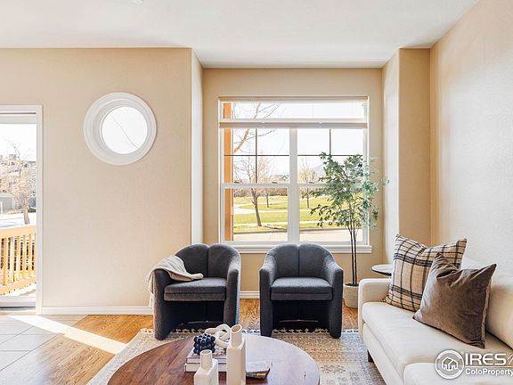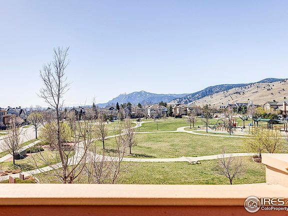Experience the Dakota Ridge lifestyle in this stunning three-bedroom, four-bathroom townhouse featuring contemporary interiors, mesmerizing Flatirons views and a coveted location facing the neighborhood's centerpiece park. Inside this beautifully maintained 2,580-square-foot home, tall ceilings rise above lovely hardwood floors, luxurious carpeting and oversized windows capturing southern sunlight and mountain vistas. A charming covered porch welcomes you into a spacious living room warmed by a handsome fireplace. Dine under designer lighting and enjoy an updated kitchen filled with custom wood cabinetry, sleek countertops and stainless steel appliances. Upstairs, the serene owner's suite impresses with king-size proportions and a large balcony overlooking the park and wide-open mountain views. Two custom walk-in closets lead to a soothing spa bathroom with a deep soaking tub, glass shower and wide double vanity. A second bedroom on this level features a north-facing balcony and en suite windowed bathroom. On the top floor, a skylit loft area is perfect as a third bedroom, office or playroom flanked by a full bathroom and third balcony. An unfinished basement, an attached two-car garage and central HVAC complete this completely turnkey, lock-and-leave home. This close-knit Dakota Ridge community is beautifully located, whether you choose to enjoy local attractions or get out of town for the weekend. Sip your morning coffee while the sunrise lights up the foothills. Gather with neighbors in Dakota Ridge Park right across the street - bustling during the day and incredibly quiet at night - or explore miles of nearby trails and Open Space right out your front door. North Boulder's favorite amenities, including Amante Coffee, Proto's Pizza, Lucky's Market and Bookcliff Vineyards, are all within easy reach, with Downtown Boulder and Pearl Street just 10 minutes away.