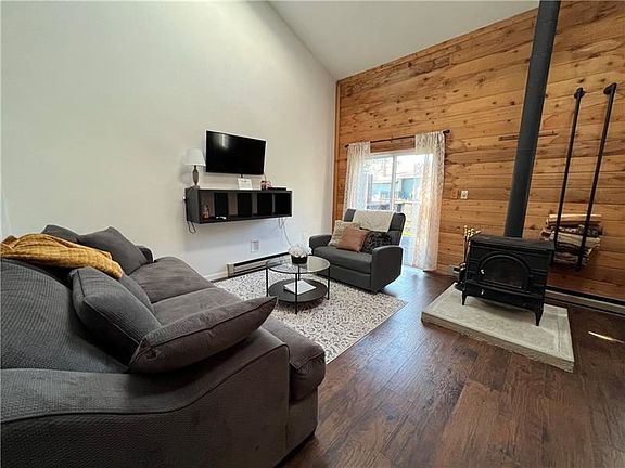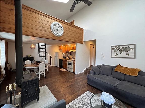 Charming Hidden Valley Townhouse with updates being sold fully furnished! Move right in and enjoy your summer months in the mountains. Both bedrooms feature an accent wall and the bathroom has a fresh new look. There are two bedrooms plus a bonus loft that you can use for additional sleeping, easily sleeps 8 or more. Full bathroom includes a washer/dryer and new ceramic tile flooring. Also includes newer vinyl windows. The living/dining area is all open and also has newer flooring, plus a wood burner! There is a back deck as well, perfect for relaxing and grilling out. Located just across the road from the state forest, it's step to the trail system for hiking, mountain biking, cross country skiing, snowshoeing, plus a great place to take your dog! Take advantage of all the HOA has to offer including 2 swimming pools, tennis/pickleball courts, playgrounds and social events. This townhouse also has a storage/attic space that could be finished out for more space.