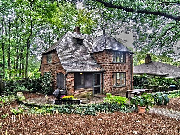 Breathtaking English Cottage with a timeless weave of character, history & charm....one of Intown Atlanta's most cherished homes. Significant architectural components include exposed brick walls, vaulted ceilings, original casement windows, steeply pitched slate roof. Gourmet kitchen, screened porch, brick & stone terrace, private fenced yard, 2 car parking pad. Gorgeous corner lot with view of Downtown skyline directly across from Freedom Park & Path. Front door connects to The Beltline, O4W Park & the culinary scene of Ponce City Market, Inman Park & Poncey Highland. Expansion possibilities.