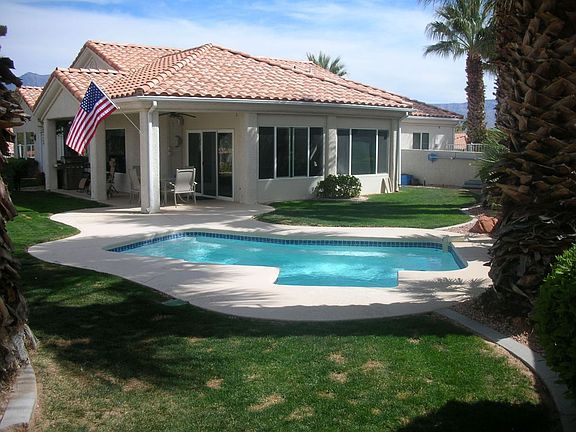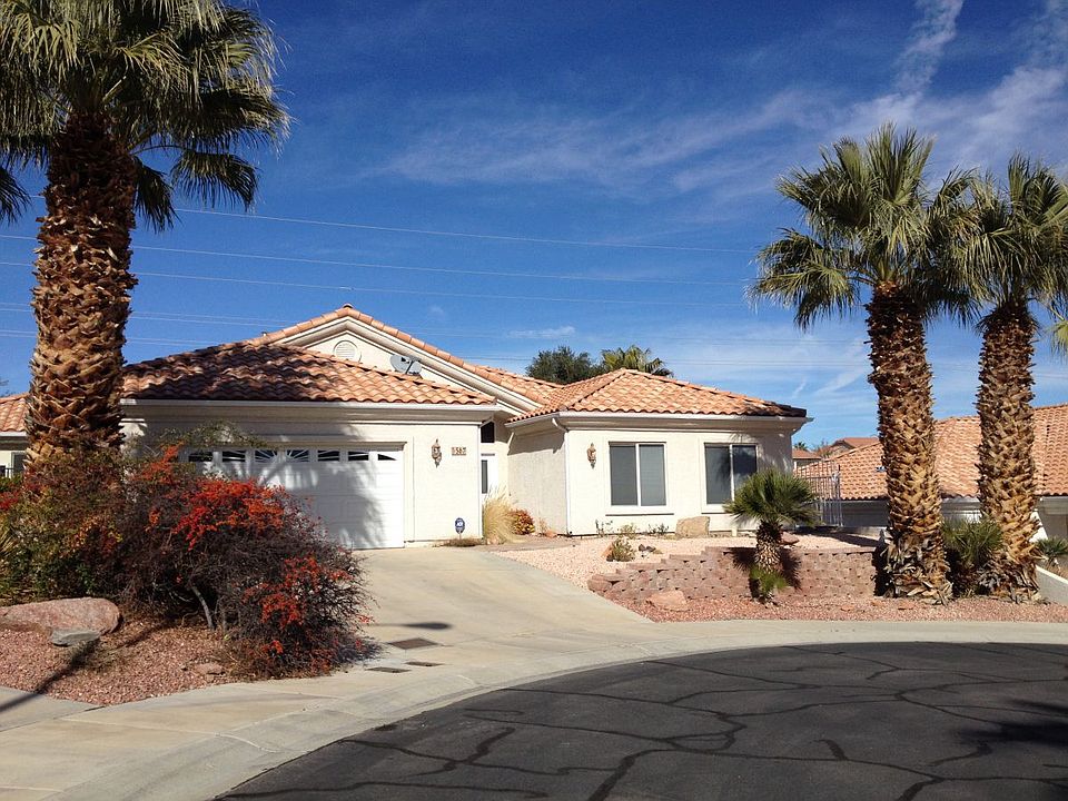 Resort living at it's BEST! Two that's right two Master Suites are just a bonus and the beginning of this charming hideaway. Bright, spacious great room with a desirable open concept. Gorgeous tile through out living area, kitchen, hallway and bathrooms. Huge breakfast bar and kitchen area with beautiful quartz countertops and top notch appliances. Wood cabinetry galore in a splendid light finish. Walkout and enjoy the comfy sun room or feel the warm sun while taking in the breathtaking views that this home has to offer. Amuse yourself watching the golfers putt on the 16th hole of the prestigious Oasis Golf Course. And if by chance that isn't enough... put your suit on and swim in your relaxing pool and soak in the beautiful palm trees and lush green grass. This is Mesquite! Come for a day, stay for a lifetime!!