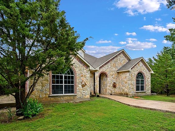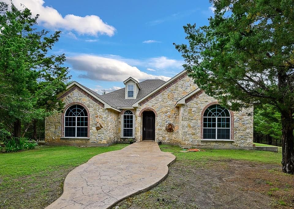 Beautiful, secluded home on 5 heavily wooded acres east of Sherman. Home has been occupied until recently but has just been fully completed. Wood and travertine flooring throughout downstairs. Large living room with corner stone fireplace. Granite countertops, tile splash and stainless appliances highlight large kitchen and dining area. Private master with WIC and shower bath, 2 secondary bedrooms share jack & jill bath. Study or 2nd living area downstairs, large game room with wet bar and half bath upstairs. Home is nestled in trees and offers 5 acres to play and roam.