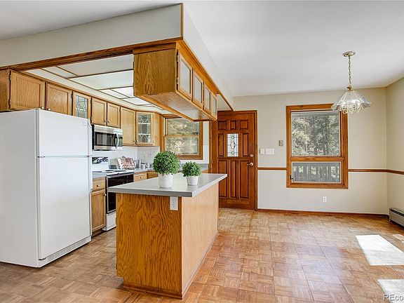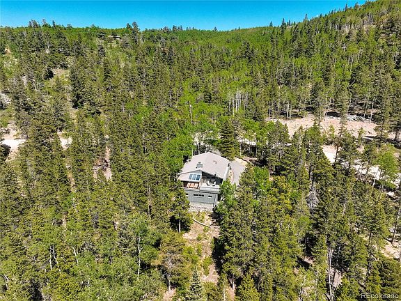 Welcome to this wonderful 4-bed, 2-bath home in Black Hawk. With an open floor plan that encourages effortless socializing and comfortable living. 2 single-car garages with storage and workbenches, a sunroom, and an outbuilding on 3.035 acres of majestic, wooded land, this property is a serene retreat. Enjoy breathtaking views of the Continental Divide that leave you in awe daily. Enjoy the wood burning fire in the living room, as it creates warmth and an inviting ambiance. The bedrooms offer tranquility and privacy. The sunroom is perfect for relaxation, and the outbuilding offers extra storage. Embrace nature's beauty on this secluded property.