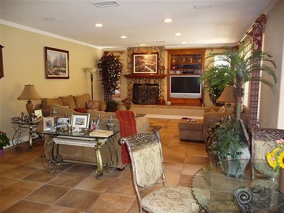 Entertainer's dream in The Oaks'' of Wood Ranch. Within this 4 bed + bonus + 4.5 bath, 4100 sq. ft., cul-de-sac estate, you will be greeted by the open foyer, grand ceilings, spiral staircase with maple and wrought iron railings, gorgeous formal living room w/ cozy fireplace, and formal dining room off kitchen. The gourmet kitchen features granite counters, Viking range, & high end custom cabinetry. Large downstairs game room features built in media center, full bathroom, bar, & wine storage room. Master suite offers a cozy fireplace, sitting room, and exquisite bath amenities with spacious closets. The back yard is perfect for entertaining. Beach entry pool, rock waterfall, slide, built-in barbecue, & charming gazebo, are all located within this large and very private back yard.