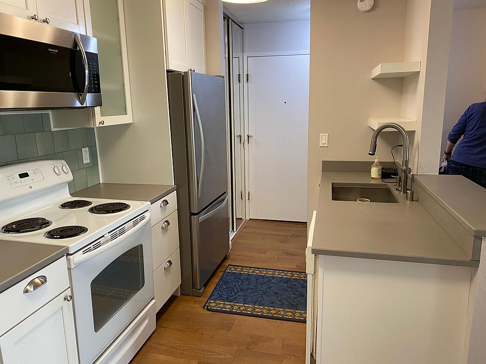 Available January 1st. One bedroom and one full bath Recently updated flooring, counters and cabinetry, this second-floor unit has a spacious bedroom with a new double-paned window, a walk-in closet, and new sliding glass door to an all-weather balcony with parquet flooring. New stainless steel refrigerator, dishwasher, built-in microwave, garbage disposal, new kitchen and bathroom sinks. The bathroom has a shower over the tub. ~750 square feet total. Local owner managed Hot water and garbage included Elevator Secure in-building parking for one car Coin laundry on-site Quick access to 580 and 24 Very good Walk and Bike Scores Near Oakland Rose Garden, Transbay bus stop (last pickup before the city, first stop back), A/C transit to downtown Oakland and BART, bike lanes. Conveniently located between Piedmont Avenue and Grand Lake shopping districts, also close to Piedmont Avenue commercial district, less than a mile to Grand Lake Farmer's Market and Lake Merritt. Non-smoking building. Owner pays for water (including water heating), sewer, and garbage. Tenant covers electricity and any internet/cable services
