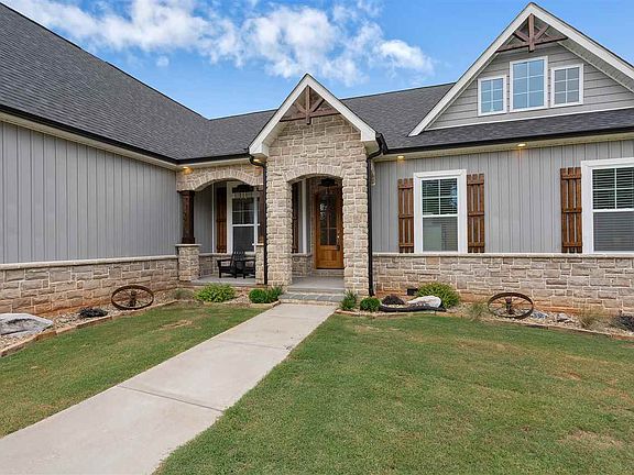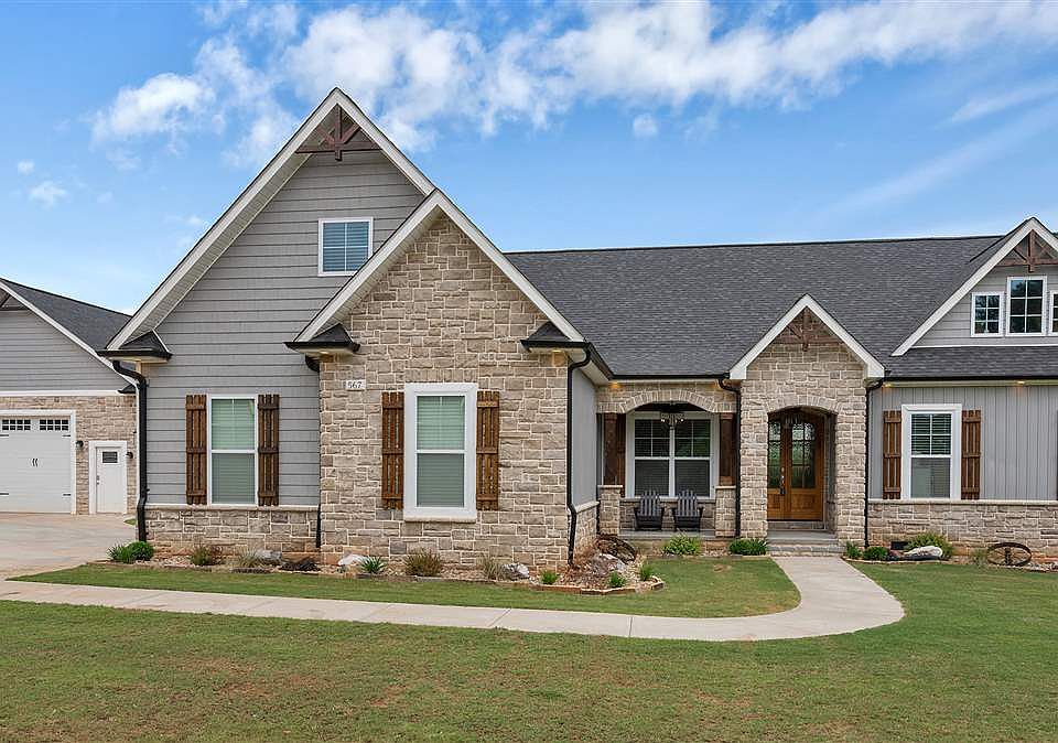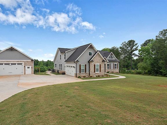 Breathtaking Custom Craftsman style home, sits 2.01 acre lot. This home offers 4 bedrooms, 3 full baths with a half bath for guest use, plus a Large Bonus room, and office and a Den. When you walk in, you will be greeted with an open concept floor plan, which opens to a Large Great Room, engineered hand scraped flooring, through the first floor, except in the bathrooms, and laundry, with 10ft ceiling, and coffered details, Floats right into a beautifully designed dinning room, with shiplap details on the walls, that opens to the Custom Kitchen with white shaker cabinets, soft close drawers, subway tile for backsplash, quartz tops, Island, Stainless Steel Appliances, including refrigerator, some floating shelves, under cabinet lighting, lots of natural light. Master Suite, with a huge Walk-In Closet, double vanities, quartz tops, soaker tub, heated marble flooring, and a large marble tiled shower. Split floor plan with 2 bedrooms on the other side, with a full bath, heated marble flooring in the bathroom. Upstairs you fill find an additional bedroom with full bath, and a bonus room. Walk out into your own private back yard oasis with a screened 12x32 porch, Wood Burning Fireplace, magnificent patio with built-in outside kitchen, that offers top of the line Fire Magic Gas Grill, Built-In Primo grill, mini refrigerator, sink. This home offers it all, including a huge detached 32x44 garage/workshop that you can store all your toys!