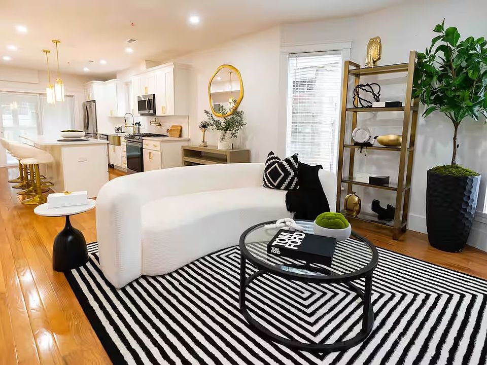 Luxurious 2BR, 2BA condo in Dorchester, MA perfect for families or individuals. Enjoy two king beds, modern bathrooms with spa showers, a comfy living room with smart TV. Cook in a fully equipped kitchen with gold finishes. Includes in-unit washer/dryer. Walk to the commuter rail for easy access to downtown Boston. Quiet, safe area with nearby shops and restaurants. A stylish, convenient stay awaits!