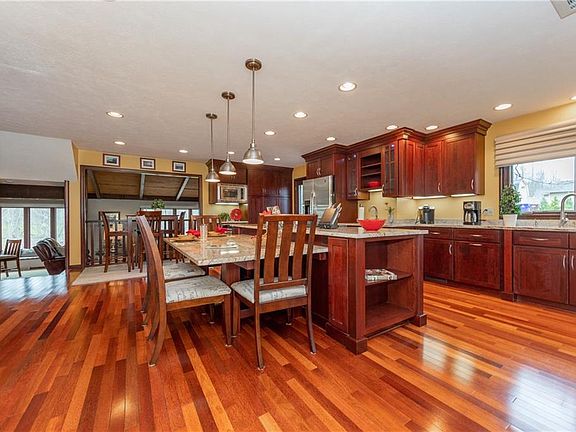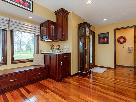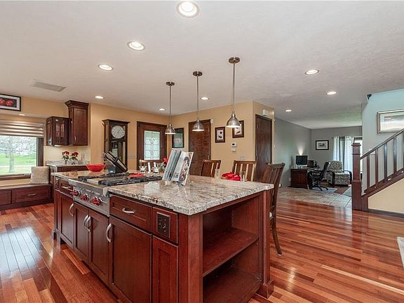 Quality and charm abound in this comfortable 3 bedrm.,2 1/2 bath home located on a quiet 1.63 acre country lot. You enter the 'heart' of the home featuring the remodeled gourmet kitchen that is highlighted by custom cherry cabinetry, Brazilian cherry flooring, lg. functional granite island with attached granite table, SS appliances including a Wolf gas cooktop, convenient bench w/storage, recessed lights, attractive pendant lighting and Pella doors to a 16x12 composite deck. Among its many comfortable rooms is a spacious family room w/a vaulted cedar ceiling, accented by a wood burning brick fireplace w/heatilator, built-in bookshelves, window seats, wet bar area and sliding doors to a relaxing 15x15 all cedar, vaulted 3 season room w/sliding doors to an incredible backyard retreat. The 40x14 stone/brick patio is enhanced w/a built-in fire pit, water feature, speakers and stereo. Retire to the master suite that offers newer carpeting, walk-in closet and a remodeled bath boasting granite counter, double vanity w/mirrored medicine cabinets and marble flooring. A huge bonus to the property is a 25x25 pole barn that includes a 12' ceiling, 10' garage door, 200 amp service and a concrete floor...perfect for wood working, car enthusiasts, etc. and storage. Pella wood windows, 10x12 shed, partially finished basement offering 3 versatile rooms and tons of storage are just a few of the many amenities found in this "pride of ownership" home! Plus Aurora Award winning schools!