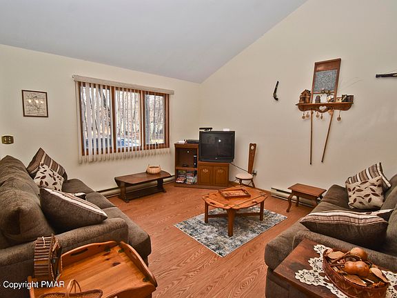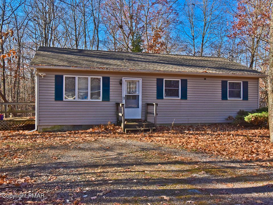 Step into your serene haven within a lake community! This TURNKEY 3bd ranch boasts an inviting open layout w/ STUNNING cathedral ceilings & NEW wood laminate floors. The heart of the home is the OPEN living space seamlessly merging into a BRAND NEW Eat-In Kitchen, offering plenty of cabinet/counter space, perfect for culinary enthusiasts. Discover 3 generously sized bedrooms, including the primary featuring a private half bath. This home comes fully furnished, w/ NEW living room furniture. Step outside onto your deck, ideal for relaxing or entertaining, & relish the comfort of a new roof providing peace of mind. Just a 15min drive to the picturesque Delaware Water Gap, this home offers the perfect blend of tranquility & accessibility to nature's wonders. Don't miss your chance to own this delightful home! CALL TODAY!