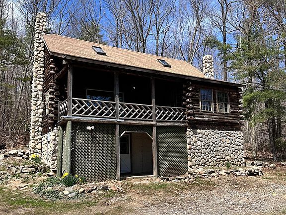 Rare opportunnity to own a charming log cabin on almost 10 acres of land, with your own POND! This home is extremely private, set hundreds of feet off the road. There is a large barn/garage which is perfect for storage or would even make a great place for hobbies. There is also a barn style shed that has housed various animals over the years. What a wonderful opportunity to have your own mini-farm. The home offers 3 bedrooms and 2 baths. One of the baths is in the basement and needs a remodel. The kitchen and bathroom on the first floor are a little dated, but fully usable and functional. There is 1 bedroom on the first floor, and 2 more bedrooms plus an office on the second floor. The living room/kitchen area is open concept. There is a Propane fired gas fireplace unit in the living room, plus a woodstove, plus the regular heating system - all of which means you can save money on heating if you would like to. OPEN HOUSE Saturday 4/20/24 from 12:30-2:30pm.