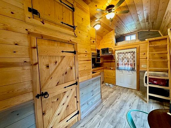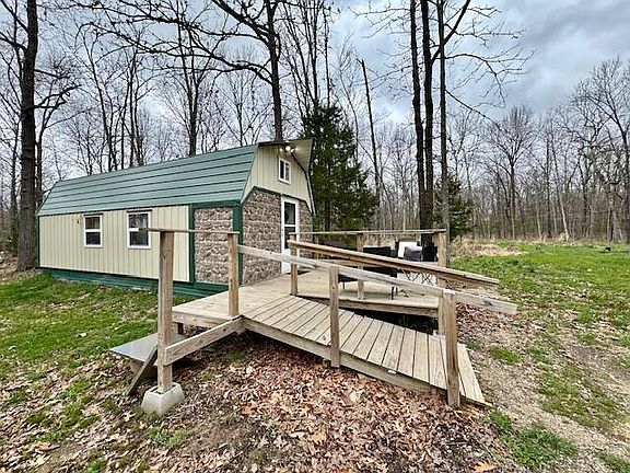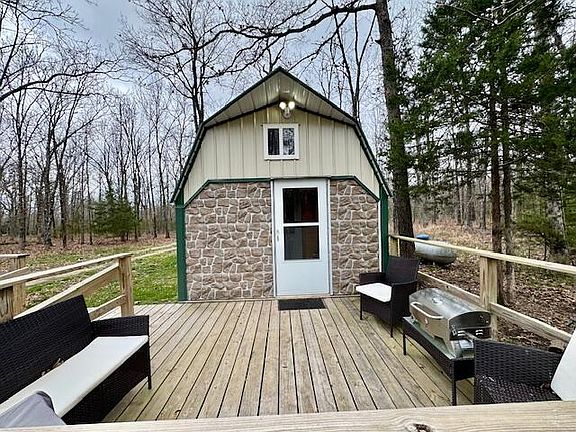 Tiny Home living at it's best! A super cute, studio home with kitchen and extra bunk area. This home is on3 parcels for a total of 9.04 acres. Many building sites on the property and several cleared areas. It's wooded and secluded making it such a perfect place to make it your own! There is also a place for a camper with electrical and septic hook up. So many nice features with this property. You'll love the clear nights watching the stars!