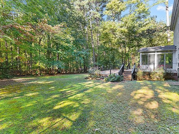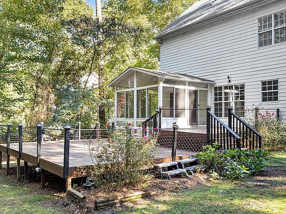 This stunning home has everything you're looking for with plenty of space, inside and out, a custom kitchen with crown molding, granite counter tops, SS appliances and hardwood floors. Transition to outdoor living with a 3 Season room, 2-level deck, and a private backyard with mature hardwood trees. The main level of the home features a large living room with a fireplace, a formal dining room, and a family room that opens up to the 3 Season Room. Upstairs you'll find 3 spacious bedrooms, bathrooms, a very large bonus room, and plenty of storage! The shining star in this home is the 3rd floor media room! Come find the Wake Forest address you've been looking for, with the peace and quiet of the country.