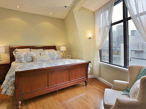 Ideally located in the heart of the South End’s Restaurant Row, this exceptional 5th floor home in the historic St. Cloud elevator building boasts stunning views from oversized windows, looking out on the Hancock, the Prudential and the South End. The open living space with soaring ceilings offers ample space for both living and full-size dining. The gourmet kitchen is finished with granite counters, custom cabinets, and Bosch stainless steel appliances. The oversized master bedroom with custom closet accommodates a king bed and the large second bedroom allows for both guest bed and office space. Additional features include high ceilings throughout, excellent natural light, hardwood floors throughout, recessed lighting, fireplace, washer/dryer in-unit, generous closet space and additional private storage, and a new individual water heater and central heat/air system. The established association features professional management and a common roof deck with great views!