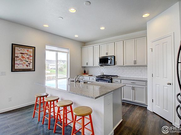 BEAUTIFUL 2-story, single-family home in Broomfield's Hearthford neighborhood! Home offers 3 Bedrooms and a Loft, 3 bathrooms, and wide-plank vinyl wood flooring and carpet mix. Main level has private Study with double French doors, and open floor plan. Family Room flows to Dining Room, and then to eat-in Kitchen. Kitchen features granite-slab countertops, decorative modern subway tile backsplash, bright cabinetry, LG stainless-steel appliances with gas range, and center island with additional breakfast bar seating x4. Sliding door off the kitchen opens to fenced back yard with big concrete patio, and home backs to incredible play park and sports' field-watch your kids play from your own back yard!Laundry Room is conveniently located upstairs near the bedrooms! Master Bedroom features a spacious private bathroom with dual sinks and big walk-in closet with window! Loft is perfect for a media room, 2nd office, or kids' playroom! Covered front porch.
