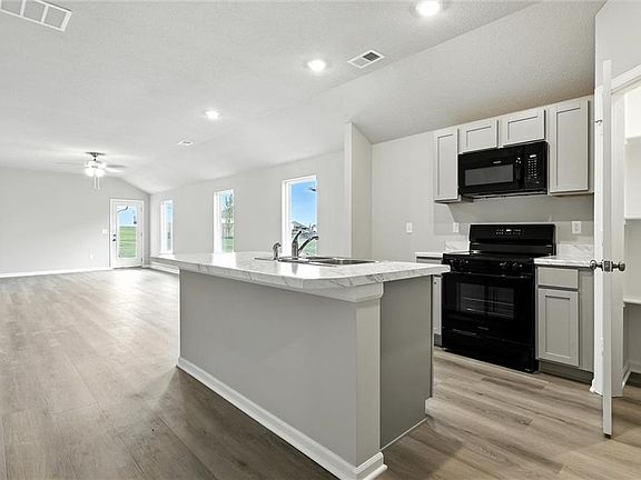 The charming RC Hudson plan is loaded with curb appeal with its welcoming covered front porch with stone pillars and front yard landscaping. This home features an open floor plan with 4 bedrooms, 2 bathrooms, and a large open family room. Also enjoy a lovely kitchen equipped with energy-efficient appliances, ample counter space, and a roomy pantry for ease of meal preparation. Plus, a covered back patio, and an additional flex room that would make a great office!