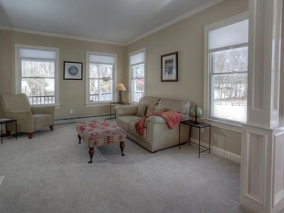Custom Equestrian 4 bdrm, 2.1 bth, Colonial on over 6 acres in Alexandria Twsp. Features include, open FL Plan, gourmet kit, 40x30 4stall barn, 3fenced pastures w/run ins, 60x100 arena, w/dir trail access home features include, exquisite moldings, random width oak wood floors, vaulted ceilings, split staircase, stone wood burning FP, granite counters and professional grade appliances in kitchen. The master suite has tray ceiling, luxurious bath with radiant floor heating, walk in closets and sitting room with a balcony overlooking the pastures and farmland, plus 3 spacious bedrooms and a second floor laundry, The custom 30 x 40 4 stall barn with finished tack room, 2 wash stalls and full loft has direct access to the Alexandria trail system and is less than a quarter mile to the township park and indoor arena.