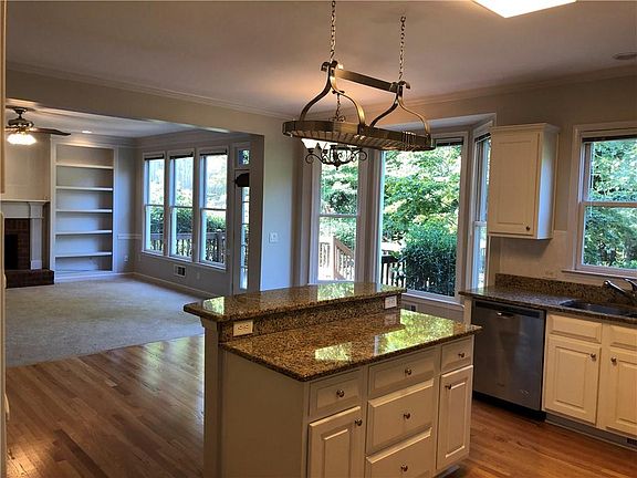 - Kitchen Features: Breakfast Bar, Pantry, View to Family Room, Stone Counters, Kitchen Island, Breakfast Room, Cabinets White