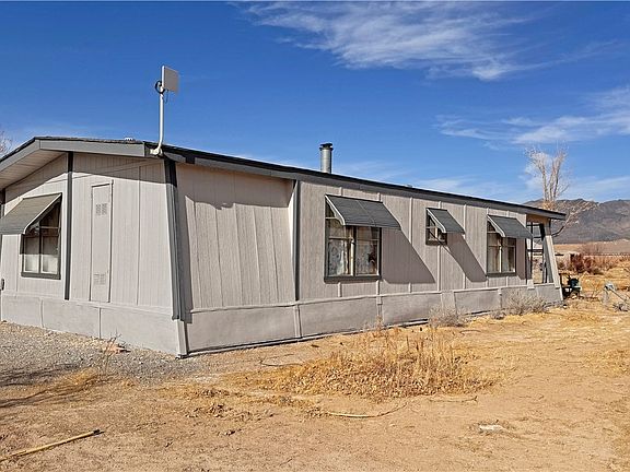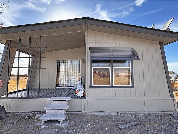 2 bedroom- 2 bath home with a mid century vibe. Stone fireplace and Cool built in bar and breakfast counter. Has a covered porch with Mt Charleston views. Great location for commuting to Las Vegas. 1-1/4 acre lot. Covering parking. Possibilities for this property are great. Would work well for an Airbnb for investors.