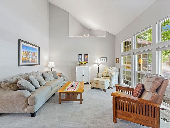 Nestled up to the Boise Foothills with stunning park views! Soaring 16-foot ceilings usher you into the heart of the house, a functional kitchen space featuring a butcher block island loaded with storage solutions. The primary suite is complete with unobstructed scenic views, a spa-like soaking tub, a separate shower & spacious walk-in closet. Meticulously maintained. Low-maintenance LVP flooring graces the main level. Recent updates include a high-efficiency gas furnace, Low-E windows, a 30-year roof & more! A cozy gas fireplace anchors the family room. The outdoor living space provides year-round enjoyment under the oversized covered patio overlooking the manicured yard & raised garden beds. Enjoy the freedom of no HOA while residing in a quiet neighborhood with friendly, long-term neighbors. This prime NW Boise location offers easy access to downtown Boise, Foothills & Greenbelt, providing endless recreation opportunities. Idaho living at its best!