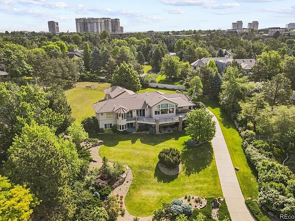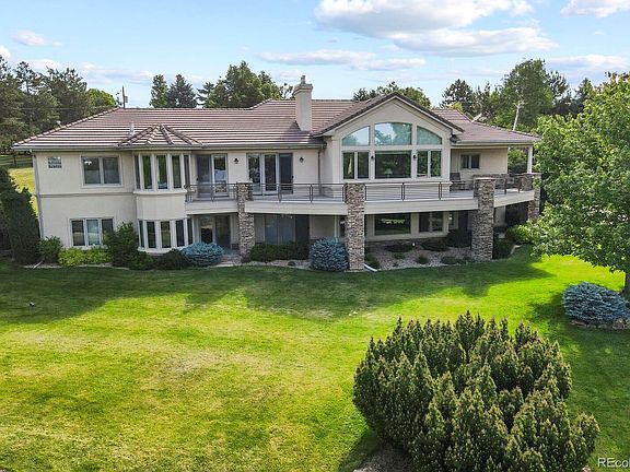 Welcome to elegantly situated, beautifully constructed, sun-filled 5670 South Newport Street. This home boasts mountain views from ten west-facing rooms. From the well-appointed kitchen to the living room with its wall of windows and soaring ceilings, down the hall to the office and the primary suite. Giant windows and patio door access to the expansive west-facing deck can be found in each of these living areas. An elegant dining room and a quiet back bedroom with en suite bathroom and patio access round out the main level. The massive lower level awaits for entertaining at the wet bar and spacious open living area, three sun-filled bedrooms with en suite bathrooms, two of which have walkout access to the west-facing, beautifully landscaped front lawn. Look for the sunny turret-like sitting areas in two of lower level bedrooms! This intelligently designed walk-out lower level also includes a wine cellar, walk-in cedar storage closet, and a massive storage area with built-in shelving. Not to be left out, the four-car extended garage offers plenty of work space, heat, and electrical. This one-acre property is private, full of lush trees and intentionally designed landscaping, with the perfect space out back for a garden. Conveniently located with easy access to the Denver Tech Center, I-25, and University Blvd.