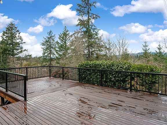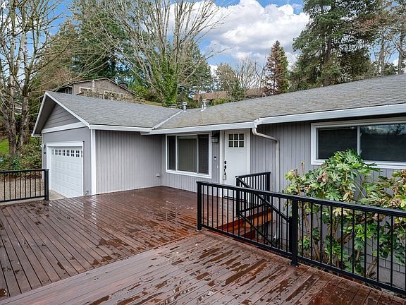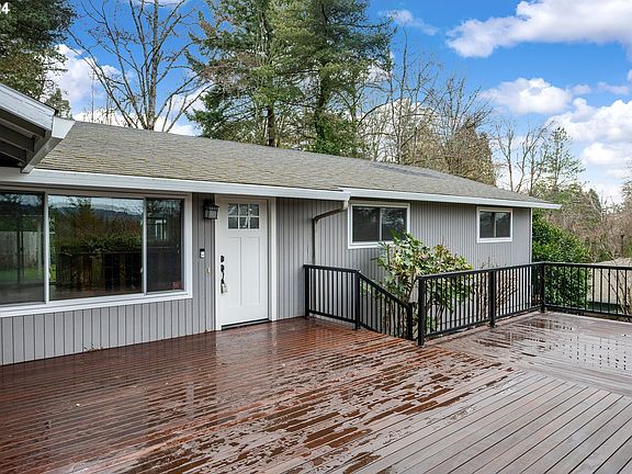 Nestled on a private dead-end road, this exquisite one-level residence presents a rare blend of tranquility and convenience, just moments away from the vibrant Multnomah Village and the lush expanses of Gabriel Park. Boasting an impressive $35,000 new mahogany deck, this home offers views of the West Hills, providing the perfect backdrop for relaxation or entertaining. This one-level home features 3 spacious bedrooms and 2 well-appointed bathrooms and is designed for comfortable living and effortless flow. The interior is adorned with beautifully refinished maple hardwood floors that add warmth and character throughout the space. The heart of the home is the inviting kitchen, equipped with rich hickory cabinets that provide plenty of storage. It opens to a cozy dining area, ideal for intimate meals or casual gatherings. The living spaces are enhanced by skylights, filling the rooms with natural light and creating an airy, welcoming atmosphere. Step outside to the new deck, where you can savor the breathtaking views or dine al fresco under the stars. The property also features a covered patio, perfect for year-round outdoor enjoyment, and a separate building housing a versatile 10x14 heated office/bonus space (not included in sq. footage), ideal for those who work from home or seek a private retreat. Modern conveniences include a Nest thermostat for optimal climate control, air conditioning for those warmer days, and an efficient layout that maximizes comfort and ease of living. The level lot boasts new landscaping, adding to the home's curb appeal and providing a lush setting for outdoor activities. The property also offers RV parking, ensuring ample space for your adventures. Come see this home in an amazing location today. All appliances included!