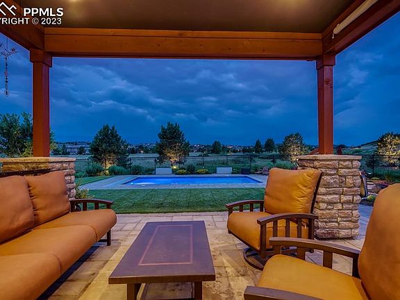Back on Market-BUYER HAD FAMILY EMERGENCY- Stunning custom home nestled on a cul-de-sac in the prestigious Pradera Golf Course Community. Perfectly situated on 1.3 acres offers the space & privacy you crave. Main level living, with a grand entrance from the moment you arrive. Professionally designed & maintained landscaping, no expense was spared to maximize the beauty in every season, guide your way to the front door! As you enter the foyer you’ll notice the site-finished hardwood flooring, custom lighting throughout, wrought-iron railing lines the stairway and showcases the vaulted ceilings. Main level boasts a private Study, powder bath + the Primary Suite: fireplace, Walk-in Closet & the private bath feels like a Day at the Spa! Large zero-entry shower w/ double shower heads & seating, double vanities with kick lighting, radiant heated tile floors make this space warm & inviting. The chef will love the gourmet kitchen: Leathered granite countertops, rich custom cabinetry + upper/under & kick lighting, large prep-island & pantry are sure to make any dinner party a breeze. Great room is the heart of the home with the majestic fireplace, custom mantel, and hearth. Breakfast nook, Formal Dining & laundry complete the main level. As you head out back you’ll notice the dramatic 12’ wide sliding glass door that leads to an Outdoor Oasis that was truly built for CO living and entertaining! This fenced area w/ roller tops features a 15 x 30 Heated Pool, Water Feature, Gas Firepit, Garden Beds & 5 zones of outdoor speakers that will make your next Pool Party the talk of the community! Make your way upstairs & find 2 en-suite bedrooms/bathrooms + Open Loft/ 2nd Living area. The final touch is the Vantage Home Automation Control System- Lighting, Audio/Visual, HVAC & Security are all controlled by the touch of a button! Unfin. Bsmt = more beds/bath, rec room etc. There are SO many more elegant features; you’ll just have to come experience this lifestyle for yourself!