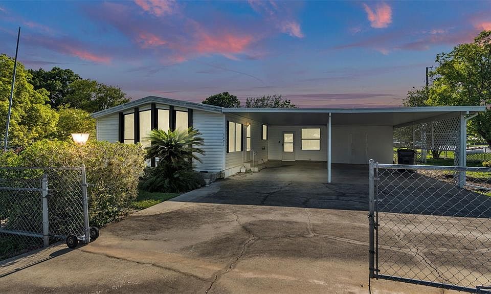 Welcome to 5671 Cherry Tree Dr, a charming 2-bedroom, 2-bathroom home located on your own private property in South Lakeland, conveniently near the Lakeland Airport and offering easy access to the Polk Parkway leading to I-4. Situated close to County Line Road, this property is in proximity to Publix Corporate, Geico Corporate, Amazon, and other amenities. This home features two large living areas, providing ample space for relaxation and entertainment. The oversized flex room offers versatility and can easily be converted into a primary bedroom suite or a mother-in-law suite, complete with its own exterior access door. Adjacent to the flex room is an additional room housing a Jacuzzi, which remains with the sale of the home, offering a relaxing retreat. Inside, you'll find an interior laundry room for added convenience. The carport is generously sized, accommodating several vehicles, with two spaces under the canopy. Positioned on a corner lot, the property includes two gated areas for privacy and security. The living room is bright and inviting, enhanced by several windows that bathe the space in natural light. A vaulted ceiling with a prominent wood beam running through the center adds character, complemented by a ceiling fan for comfort. Ready for your personal touches and improvements, this vacant home is primed for a quick closing, making it an ideal opportunity to customize and make it your own. Don't miss out—schedule your tour today to explore the potential of this South Lakeland gem.