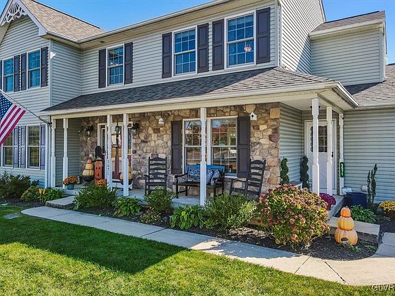 HIGHEST & BEST DUE TUESDAY, 10/29 @ 8pm. Welcome to this inviting property featuring a covered front porch. With five spacious bedrooms and 3.5 baths, this home offers a perfect blend of comfort and style. Enjoy beautiful hardwood floors throughout the foyer, dining room, and powder room. The first floor includes a versatile living room, ideal for a home office. The fully equipped kitchen boasts a gas range, microwave, dishwasher, disposal, refrigerator, double bowl stainless steel sink, center island, planning center, and pantry. The breakfast area provides lovely views of the landscaped yard. Relax in the family room, which features a cultured stone gas fireplace, ceiling fan, and French doors leading to a charming paver patio. Upstairs, the master bedroom offers a ceiling fan/light combo and a spacious walk-in closet with organizers. The private master bath features a whirlpool tub, separate shower, double bowl vanity, and linen closet. Three additional bedrooms, each with ceiling fan/light combos that share a well-appointed hall bath. Enjoy a partially finished basement includes a full bathroom, living space that could be a 5th bedroom or office and storage room! Enjoy the fenced yard with heated saltwater pool complete with a paver patio and storage shed. Recent updates included new Anderson windows installed 2022, new roof (2023), HVAC unit (2024) and hot water heater (2024). Located in a convenient area, this home is a must-see!