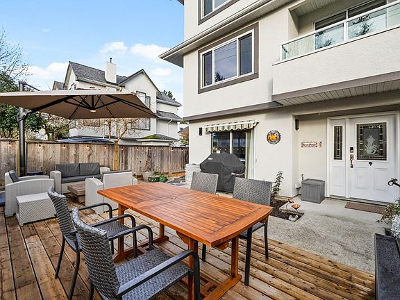 Beautiful and immaculately kept 4 bedroom, 2.5 bathroom CORNER town home w/expansive DECK OF DREAMS. Feels like duplex/house sized living w/1800 square feet for everyone to enjoy indoors + outdoors. Large living/dining space + convenient powder on the main, three bedrooms UP, and 4th bedroom downstairs for a private office, guest bed or home gym. Custom built in wine bar, laminate flooring, white shaker kitchen cabinets, gas stove, upgraded W/D, extra windows for a light filled home. If you love fresh air and outdoor space for entertaining, you'll love THREE patios + the dreamiest fenced yard, summer ready. Double car garage. A MUST SEE!