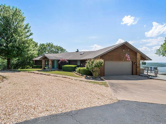 Seller is Owner/Agent. Holy WOW! Breathtaking panoramic lake view w/ 365 days of stunning sunsets over the Kimberling City bridge. This was a scenic turnout; water, mountains, coves & a bridge - STUNNING! Table Rock Lake views from every room of this gorgeous, nautical, updated, pristine custom home - feels like you're on vacation every day.The big, open kitchen with its wall of floor-to-ceiling windows is the ultimate gathering space for family & friends. Other features include 'boat' mantle, huge walk-in closets, cathedral ceilings, stacked stone fp's and laundry's on both levels. 2 living areas, 2 sitting areas, walk-out basement & custom pier deck perfect for entertaining & capturing sunsets. Furniture, decor, hot tub, boat slip & Bennington tritoon for sale for additional $