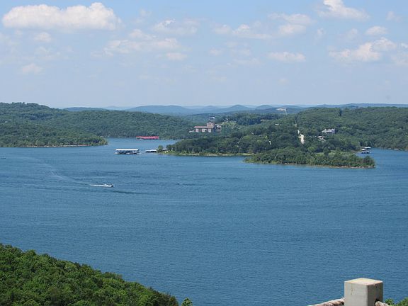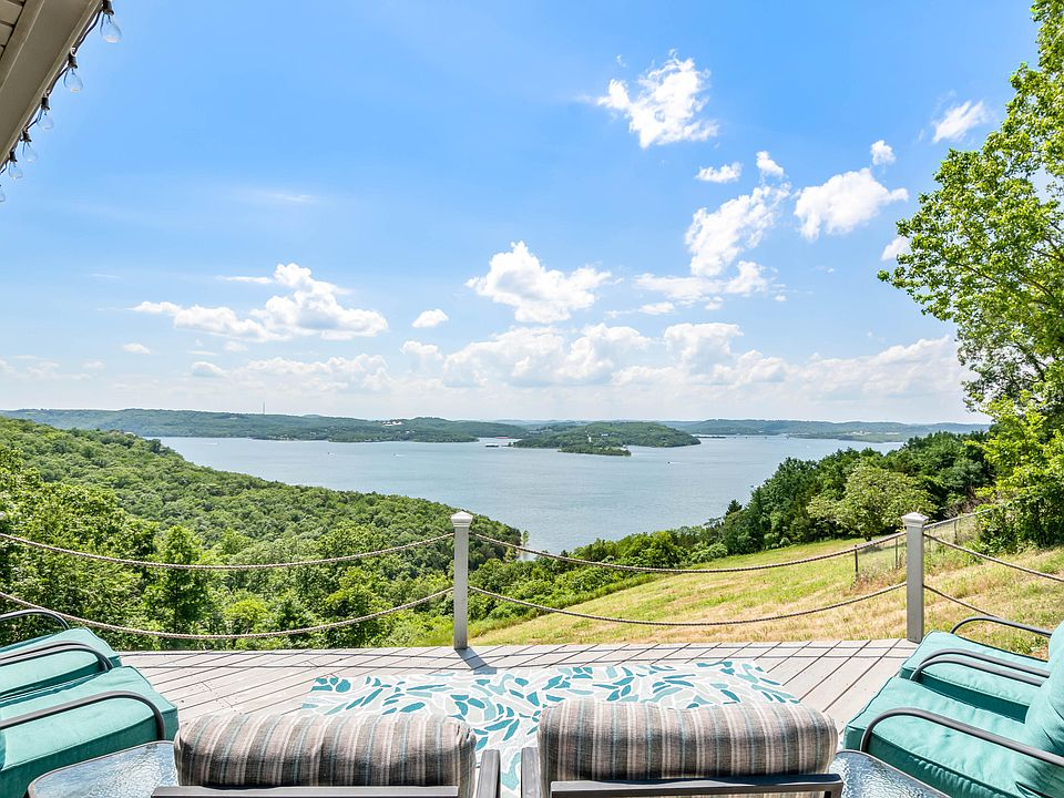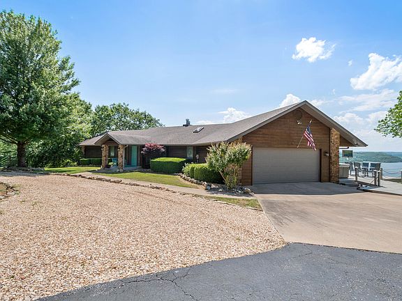Seller is Owner/Agent. Holy WOW! Breathtaking panoramic lake view w/ 365 days of stunning sunsets over the Kimberling City bridge. This was a scenic turnout; water, mountains, coves & a bridge - STUNNING! Table Rock Lake views from every room of this gorgeous, nautical, updated, pristine custom home - feels like you're on vacation every day. The big, open kitchen with its wall of floor-to-ceiling windows is the ultimate gathering space for family & friends. Other features include 'boat' mantle, huge walk-in closets, cathedral ceilings, stacked stone fp's and laundry's on both levels. 2 living areas, 2 sitting areas, walk-out basement & custom pier deck perfect for entertaining & capturing sunsets. Furniture, decor, hot tub, boat slip & Bennington tritoon for sale for additional $