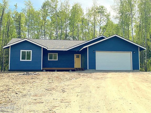 This almost completed new construction home sitting on .92 acres is minutes from the Parks highway making this the perfect commuter home. Enjoy the open floor plan w/ vaulted ceilings in the kitchen and living area. The beautiful kitchen is the heart of the home complete with a large navy blue island. Boasting a pantry that is 6'10''x 5'7''. Lots of Storage!The 3 bedrooms are separated by the living space.The master suite on the right with two bedrooms and one bath on the left. Beautiful treed lot makes this home feel very secluded and gives you privacy.