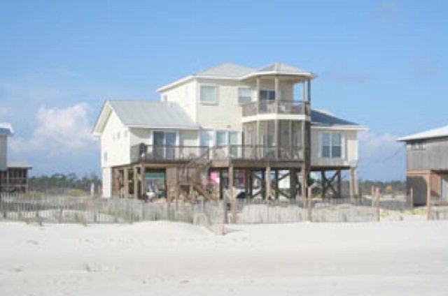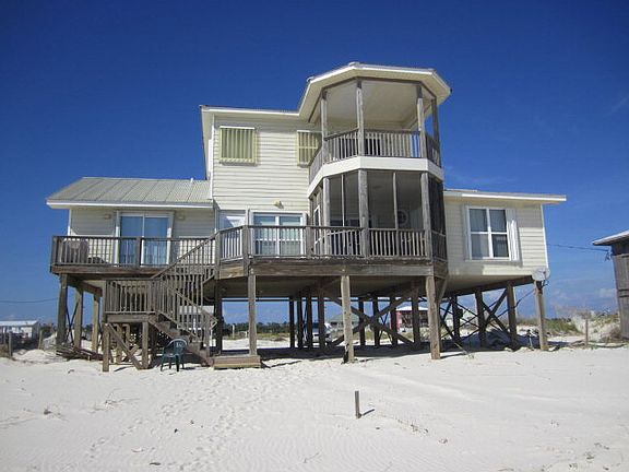 GULF FRONT BEAUTY! Large open living/dining/kitchen. Kitchen w/eating bar & sep. dining area. Four BD each w/private bath. Two Master Suites w/Jacuzzi tub & sep. shower. Screened & open porches. Well equipped kitchen w/ice maker. 2012 Rental over $74,000. Parking under. Secluded Sugar White Beaches w/wide open spaces. Near World Class Golf, Marina, Charter Fishing, Restaurants & Historic Fort