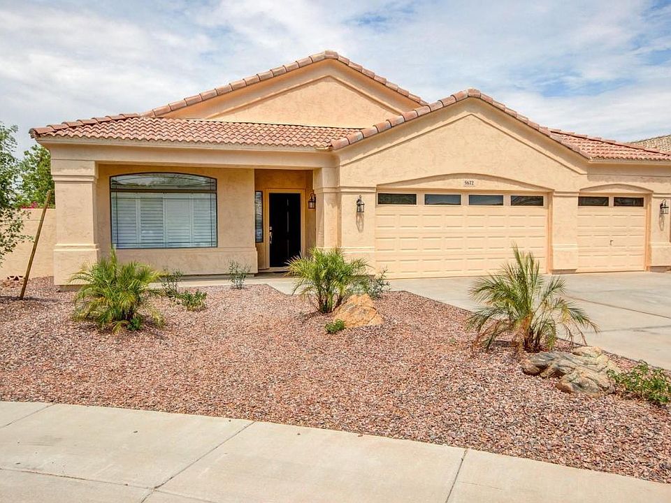MOVE IN READY REMODELED HOME located on a cul-de-sac lot and in a great community! Soothing color palette with elegant new 12x24 brick laid porcelain tile flooring throughout. Bedrooms have modern upgraded new plush carpet. Stunning kitchen features center island with breakfast bar. New Espresso stain cabinets with stylish hardware and decorative backsplash. New granite counter and stainless steel appliances. Home has shutters, new oil rubbed bronze fixtures, lights, ceiling fans and so much more. Back and front landscaping was just completely redone for a clean low maintenance yard. Home has oversized 3 car garage with new epoxy floors and 2 new garage door openers. Backyard features a large covered patio with 2 new outdoor ceiling fans.