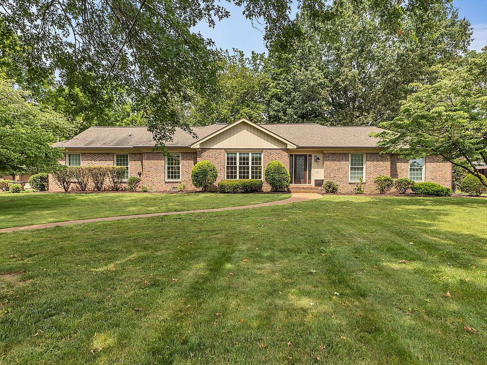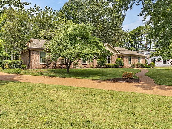 Under contract w/ home sale contingency. Still showing for back-ups. One-level living on a beautiful corner lot with mature trees. Close to The Well, Orange Theory and everything that Seven Springs and Brentwood has to offer. 4BR/4BA, sep living room and den, eat-in kitchen and wonderful outdoor space with Pergola. One bedroom and bath over garage could double as rec room or be used as office. Two primary suites on main level, gas fireplace, tankless water heater. Park your cars in the garage or use the carport with concrete ramp to spacious back deck. New gutter guards, new back yard fence, new blower in HVAC, and all new ceiling fans. All-season sunroom has its own heating and air. Close to all restaurants, shopping, Cool Springs and downtown in 12 mins. No HOA!